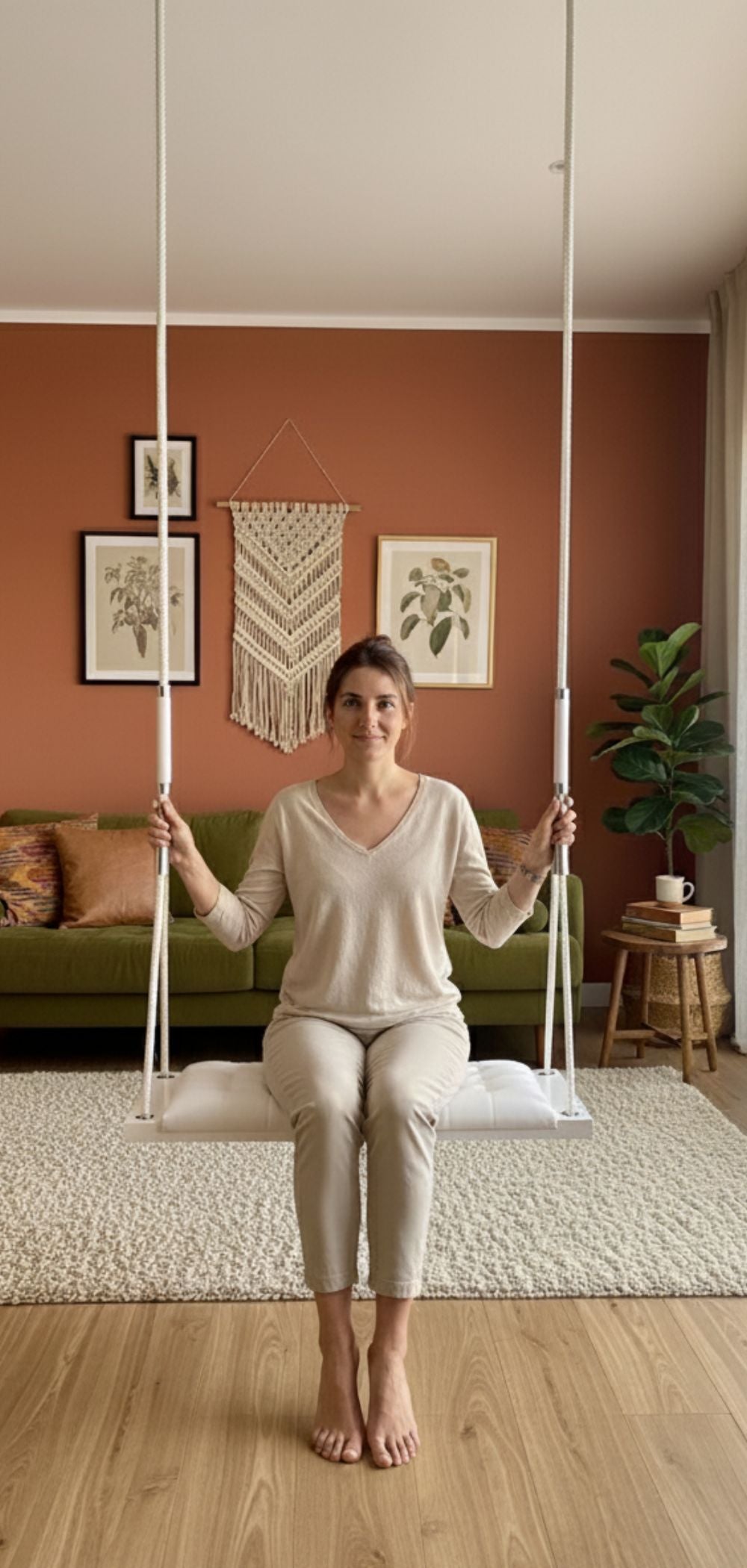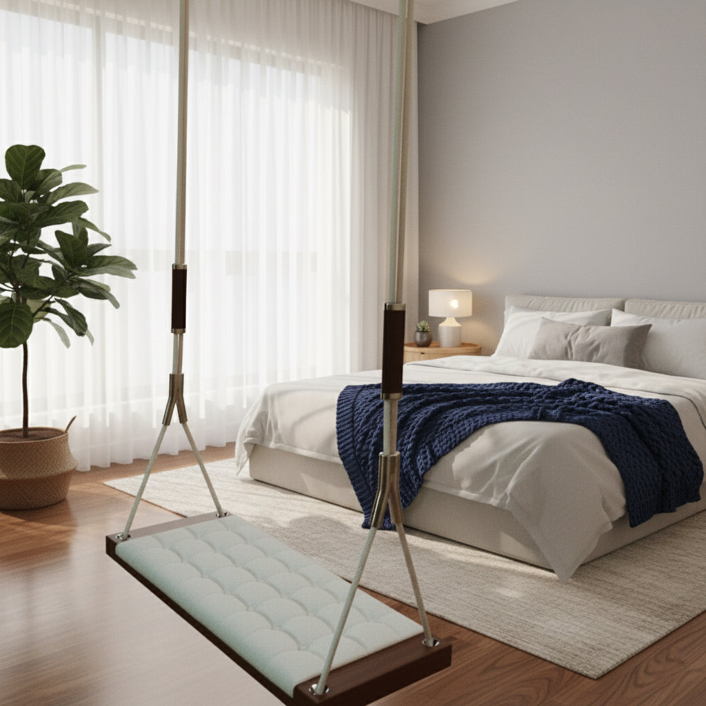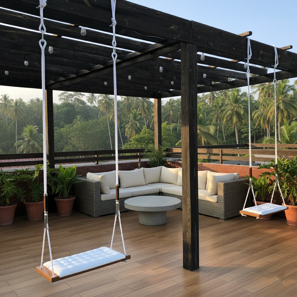 Ideal for residential or commercial interior spaces, these beautiful, unusual handcrafted swings can be used alone or in pairs. Our swings can find their place in the living room, bedroom, corridor, office reception, waiting room, lobby of a hotel or restaurant. MAJESTIC swings are designed mainly for indoor environments. However, they are also recommended to be placed in outdoor spaces that are open but covered, such as terraces and gardens. They can be hung from any solid concrete/wooden roof or wood/iron rafters. Each swing comes with a complete installation kit and easy-to-follow instructions. We handcraft each swing to order, completely from scratch. So there is no reason why you shouldn't get a perfect piece.