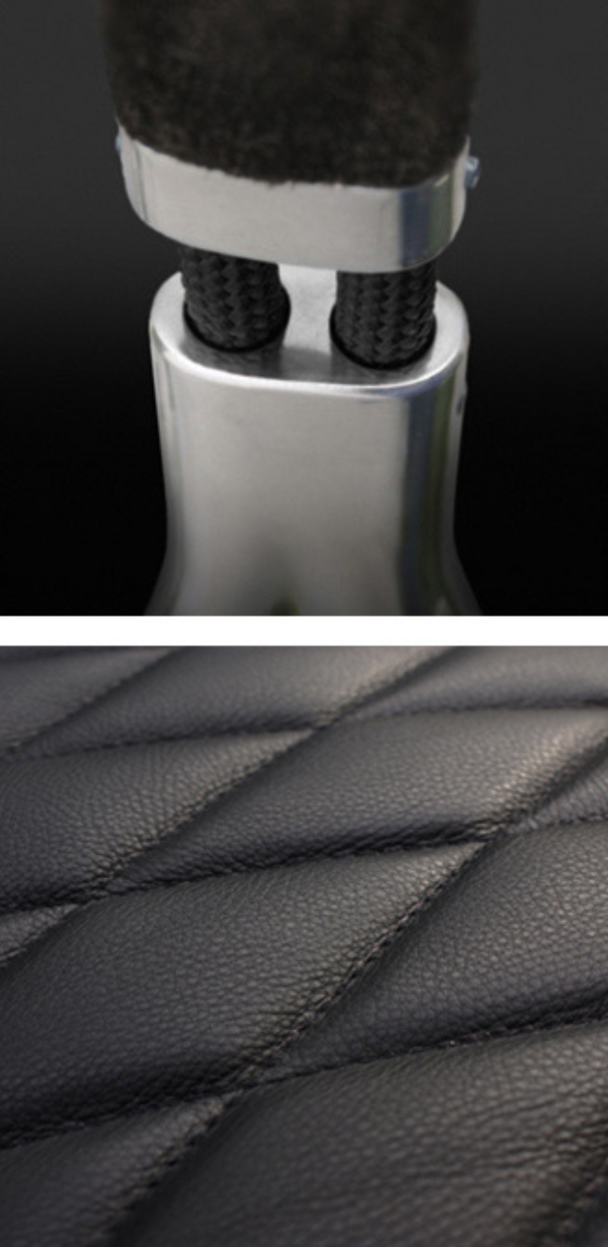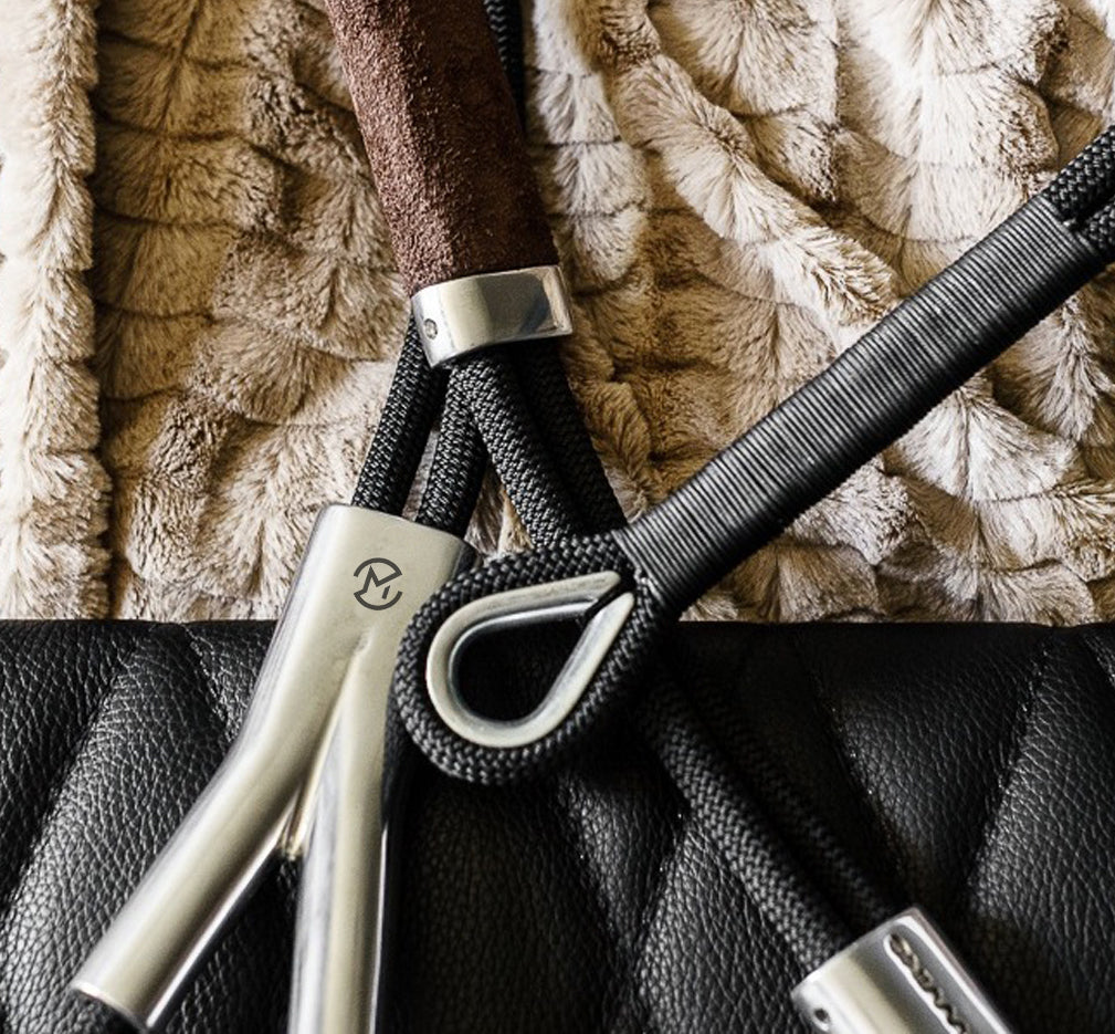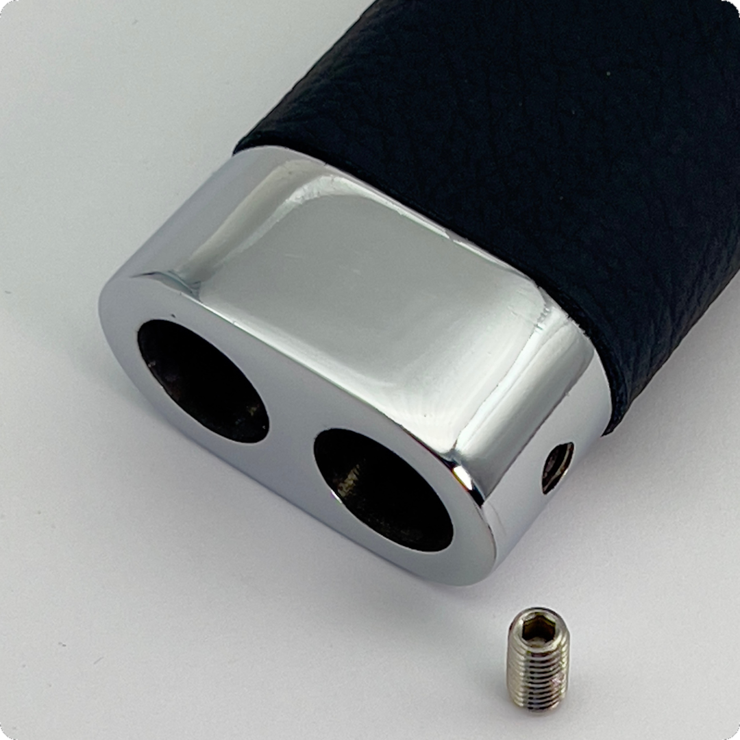 Genuine leather-wrapped silver grip – fully adjustable for personalized comfort and style.