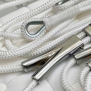 Heavy-duty 12mm hand-wound polypropylene rope, strength-tested for over one ton, featuring reinforced steel thimbles for lasting durability